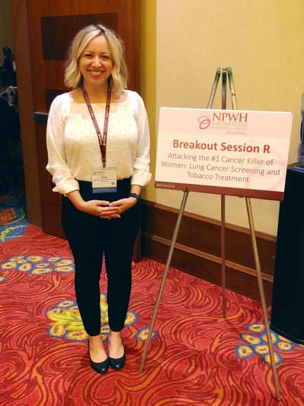 The goal of her presentation was to encourage providers to consider lung cancer a women’s health issue, and to add lung screening to the list of other cancer screenings that they typically order or perform. She also covered the importance of smoking cessation and equipped them with the information they need to address tobacco treatment quickly and effectively in their clinics.
